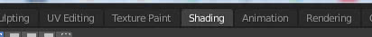 Wir wählen den Arbeitsbereich "Shading" aus, indem wir auf die entsprechende Registerkarte im Menü klicken
