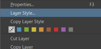 Klicken Sie mit der rechten Maustaste auf die Textebene und wählen Sie "Layer Style" (Ebenenstil)
