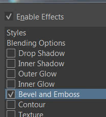 Aktivieren Sie im eingeblendeten Fenster die Option zum Aktivieren der Eigenschaft "Bevel and Emboss"