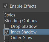 Lassen Sie uns nun einige Teile der mit der Abschrägung erhaltenen "Bevel" und den "Inner Shadow"-Effekt aktivieren