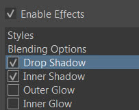 Zum Schluss fügen wir der Schrift einen Schatten hinzu, indem wir den "Drop Shadow"(Schattenwurf)-Effekt aktivieren