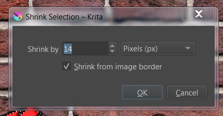 Verkleinern wir die Auswahl ("Shrink by" (Verkleinern um)) auf 14 Pixel