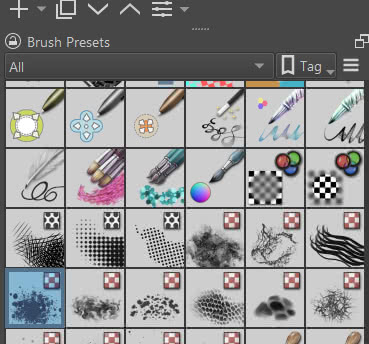 Wir fügen Farbflecken hinzu, um unserem Text Lebendigkeit und Ähnlichkeit mit einem Graffiti zu verleihen, und helfen uns mit den Pinseln, die bereits standardmäßig in Krita vorhanden sind.