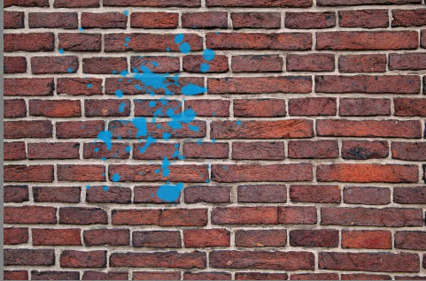 Wir verschmelzen alles, was wir bisher erstellt haben, mit der Wand, dh den Text und die Flecken, um den Eindruck zu erwecken, dass sie auf die Ziegelwand gemalt wurden: Wir wählen alle Ebenen aus, außer "Background", der das Bild der enthält Ziegelwand,