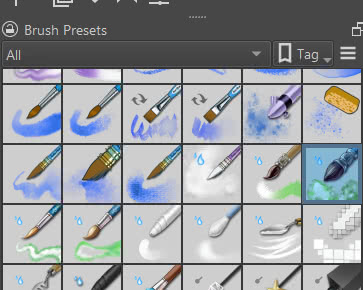 Wir verwenden jetzt den Pinsel "Watercolor Texture" (mit "Size" (Größe) unverändert = 220px),