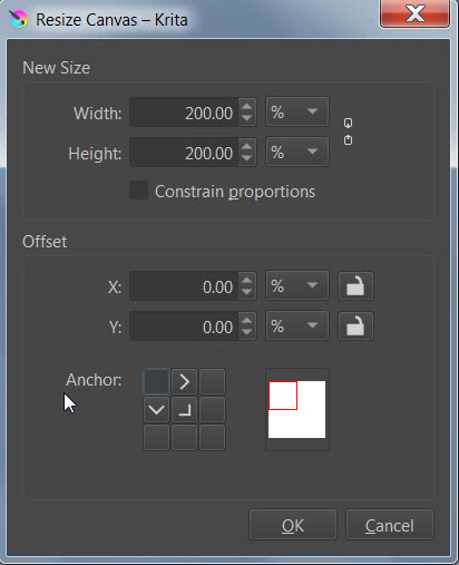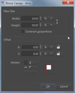 Dies entspricht dem Ziehen des Cursors im oberen Menü von Krita mit der Maus