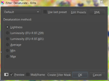 Einer der am häufigsten verwendeten Filter ist derjenige, mit dem Sie die ausgewählte Ebene in Graustufen umwandeln können. Drücken Sie einfach die Tasten „Strg+Umschalt+U“ und das Popup-Fenster erscheint