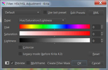 Spezifischer Filter zum Anpassen des Farbtons, der Sättigung (wenn Sie ihn auf Null setzen, erhalten Sie ein Graustufenbild) oder der Helligkeit einer Farbe