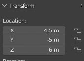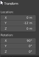 We select the camera, present by default, and in the panel on the right (which can be recalled by pressing the "N" key) we assign new coordinates for the position and rotation