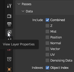 To enable the "Pass Index" of the objects, in the "View Layer Properties" tab, check the "Object Index" option