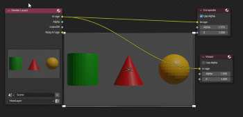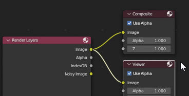 and connect to the "Render Layers" node a new "Viewer" node ("Add > Output > Viewer") which will allow us to show the previews of the results of the operations carried out in the "Compositor"