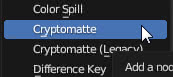 however these refer to the old "Cryptomatte legacy" node (to understand the difference between the old and the new "Cryptomatte" node and how to use it, see also "Cryptomatte in Blender 2.8 and 2.93, a revolution") but we use the new one, adding it with "Add > Matte > Cryptomatte"