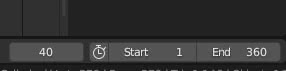 In this editor we set the number of frames to 360 in the "End" field, at the bottom right.