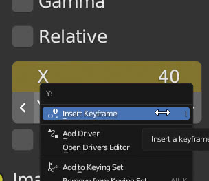 Let's start by animating the blur of the cylinder, leaving the rest unchanged: we fix the current situation by creating a keyframe for the x and y values, right-clicking their values in the node and selecting the "Insert keyframe" option