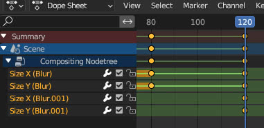 In the "Dope Sheet" editor we see that two new channels "Size X (Blur.001)" and "Size Y (Blur.001)" have been added,