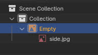 If we look at the "Outliner", we notice (as we have already announced) that it is an "Empty" object, with the image we have loaded associated with it (in our case "side.jpg")