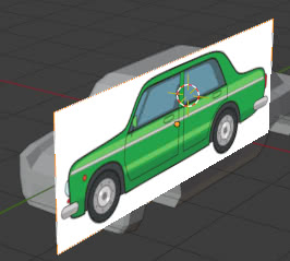 If instead we choose the "Back" option, the image is seen behind the car model (and behind the other objects present)