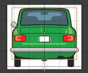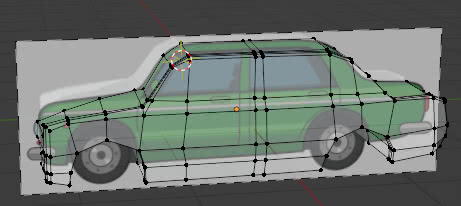 Finally, we press the "CTRL" key and "1" key on the numeric keypad, to access the back view: we see the profile of the selected parallelepiped and also the profile of the front view image, which is invisible because the "Side:Front" option is active (so it does not interfere with the modeling work of the back of the car)