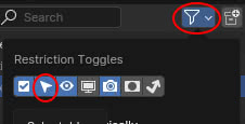 In the "Outliner" window we click on the "funnel" shaped button and activate the selectability option