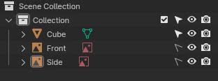 we can eliminate the latter, considering that the reference images have all been positioned and we can, if necessary, group these in their own non-modifiable "References" collection, so that we can also hide them and make them reappear more quickly, leaving the main collection free to place the object that we need to model