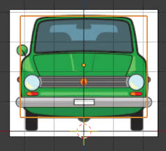 We center the image of the car and position the wheels so that they are "on the X axis" (this operation could also be done after having built the entire model, but it is useful to have more information on the relative positioning of the images)