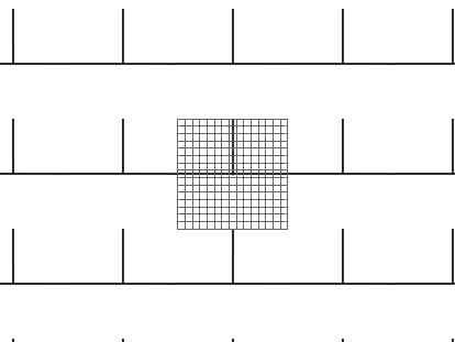 As you can see, the area where we are drawing is identified by the grid, while the other duplicated areas are shown virtually (virtually in the sense that in our project the image we are drawing has not been actually duplicated, but only a temporary preview is shown): the bricks have already been roughly defined, but some lines are still missing.