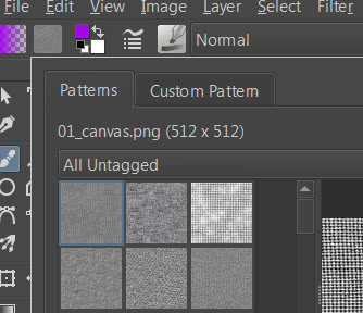 To save the pattern just created and introduce it into the relative list in Krita, open the "Fill Patterns" window, clicking on the button at the top left, under the menu (to the right of the one to select the gradients and to the left of the one to choose the colors)