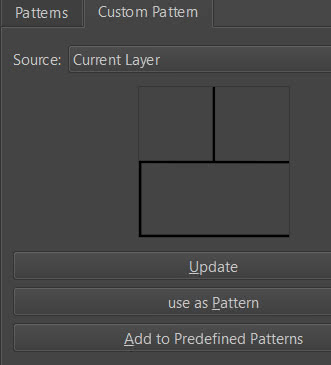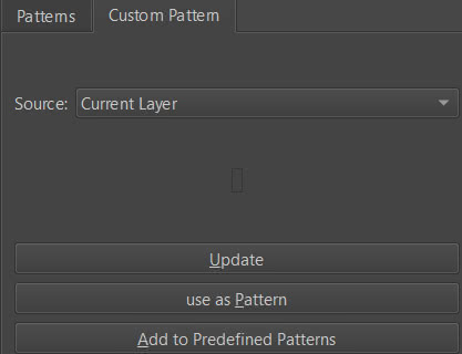 To save a pattern only for this session of using Krita (restarting the software will lose it) in the "Custom Pattern" window we press the "Use as Pattern" button
