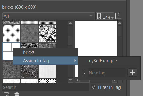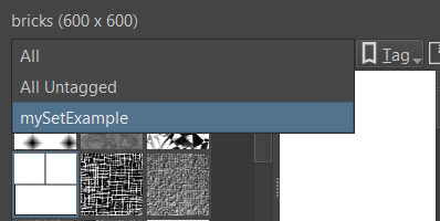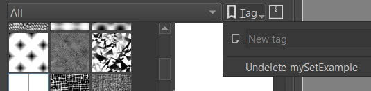 if we right-click on a pattern icon, we will be presented with the option to associate the pattern with the tags we have created (in this case "mySetExample") or to create a new tag