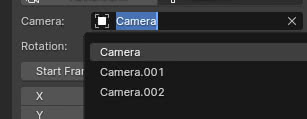 A la derecha de "Camera:" está el nombre de la camera que orbitará alrededor; si hay más de una en la escena, elija la deseada