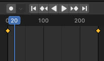 Si lo seleccionamos notamos que se han creado dos fotogramas clave en la "Timeline" de la parte inferior.