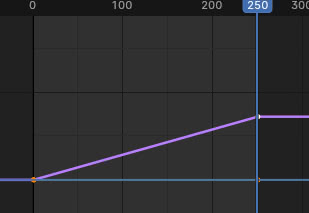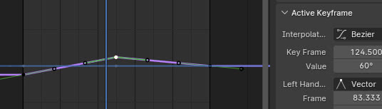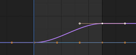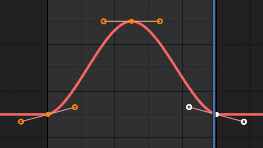 Podemos ver que en correspondencia con los dos fotogramas clave hay una interpolación de Bézier que hace que la transición de la posición en movimiento a la inmóvil sea menos abrupta.