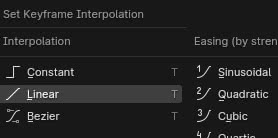 Seleccionando ambos los fotogramas clave, pulsando la tecla "A", podemos modificar el movimiento uniforme de dos formas: pulsando la tecla "T" y en la ventana emergente seleccionando una interpolación lineal.