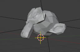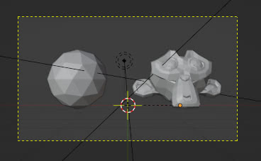 Por lo tanto, puede resultar conveniente orbitar la camera alrededor de un punto particular, elegido según su conveniencia utilizando el "3D Cursor". Una vez que hemos posicionado el cursor, en nuestro caso entre los dos objetos, seleccionamos uno de ellos (nuevamente la cabeza de mono), habilitamos la opción "Use cursor position" en el panel de complementos,