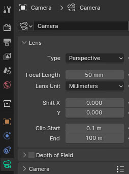 Seleccionamos la camera y en la pestaña "Object Data Properties" vemos que el valor actual de "Focal Length" es "50 mm"