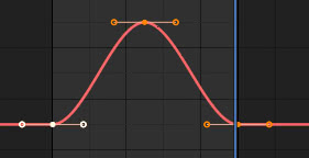 Como puede ver, la pendiente de la curva en el fotograma clave inicial y final es igual a cero, por lo que intentamos aumentar la pendiente de la subida y bajada para aumentar la velocidad de ampliación, pero no tanto como sería obtenido transformando el "bezier" en el tipo "vector".
