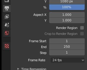 Il numero di frame al secondo del filmato è 24, quindi settiamo tale valore nel campo "Frame Rate" del tab "Output Properties", nella Properties Window in alto a destra