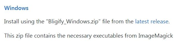 nella pagina che segue si può scaricare o solo l'ultima versione dell'addon, "bligify.zip", o l'addon e i files eseguibili che effettuano la conversione, contenuti nel file "bligify_windows.zip".