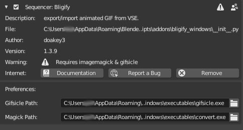 Come si può vedere nella figura, nelle "Preferences" sono presenti "Gifsicle Path" e "Magick Path" in quanto, oltre all'installazione degli scripts python, vengono estratti e salvati i due eseguibili che serviranno per le trasformazioni delle immagini.