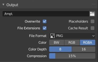 Nella Properties Window settiamo in "Dimensions" la risoluzione X e Y, che si consiglia di configurare uguale o minore di quella del filmato di partenza (con le stesse proporzioni) , come output una sequenza di PNG, con canale alpha attivato (RGBA), che ci servirà in seguito